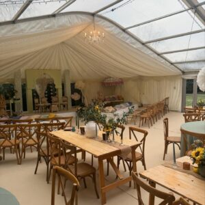 At Bybrook Furniture & Event Hire, our rustic trestle tables bring style and practicality to events across the Midlands. Clean, sturdy, and well-maintained, they’re perfect for creating a warm, rustic atmosphere. Optional delivery, collection, and setup services are available if arranged in advance.